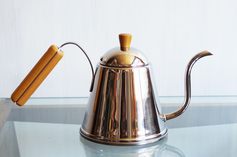 天然木の持ち手と蓋が特徴的な、コーヒードリップポット。 …