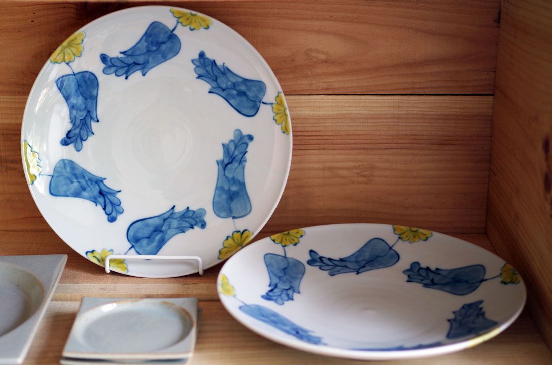 葛西国太郎さんの「色絵黄花」。 大きめの少し深めのプレー…